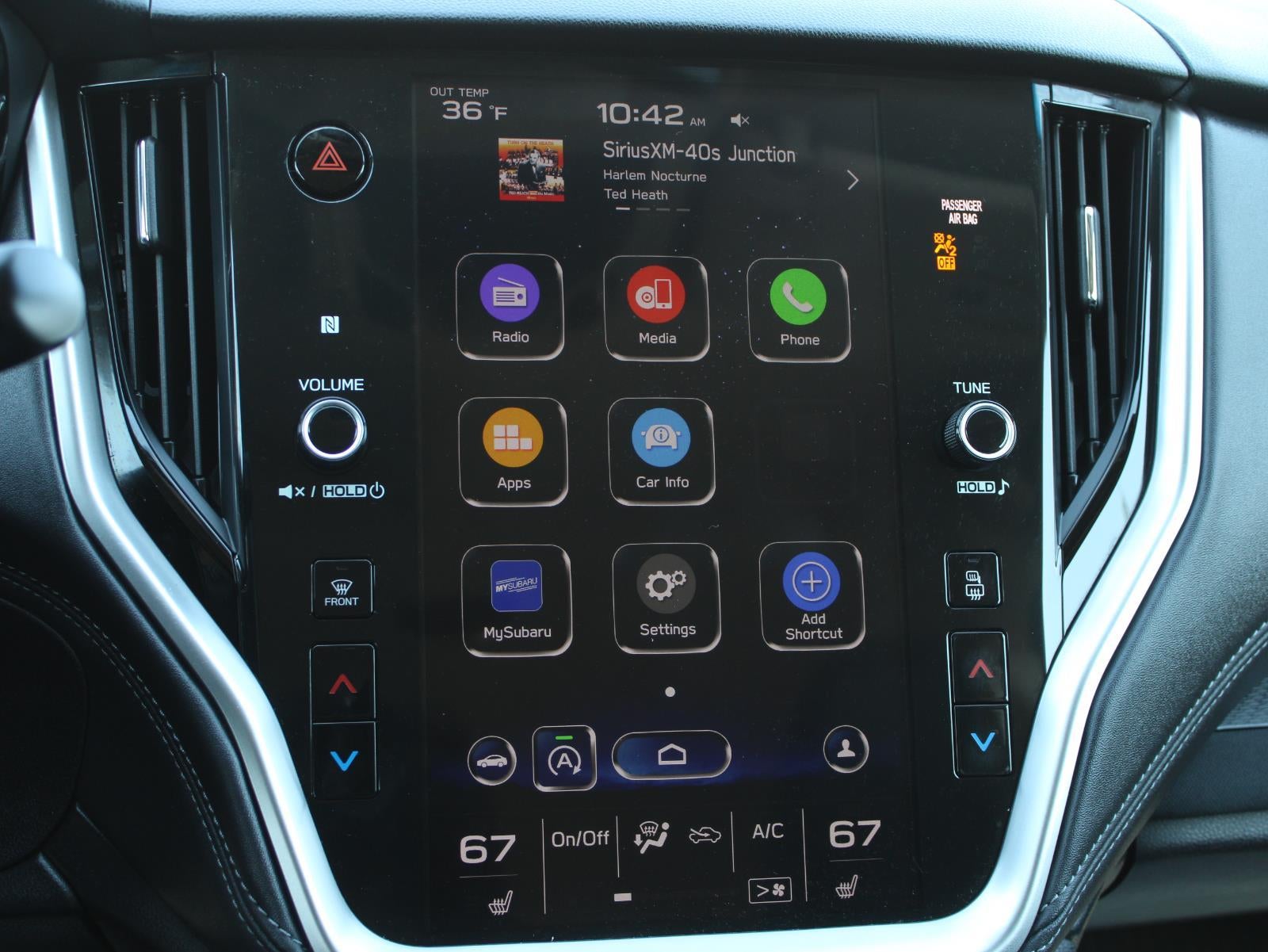 - Radio: Subaru STARLINK 11.6" Multimedia Plus Sys -inc: AM/FM stereo, HD Radio, voice activated controls, Bluetooth® audio streaming and hands-free phone connectivity w/SMS text messaging (applicable w/compatible cellphone), Near Field Communication (NFC), iPod control capability, SiriusXM All Access radio (subscription required), SiriusXM Travel Link (subscription required), smartphone integration: Android Auto, CarPlay and STARLINK cloud applications, 6 speakers, 3.5mm auxiliary input jack and dual USB input ports